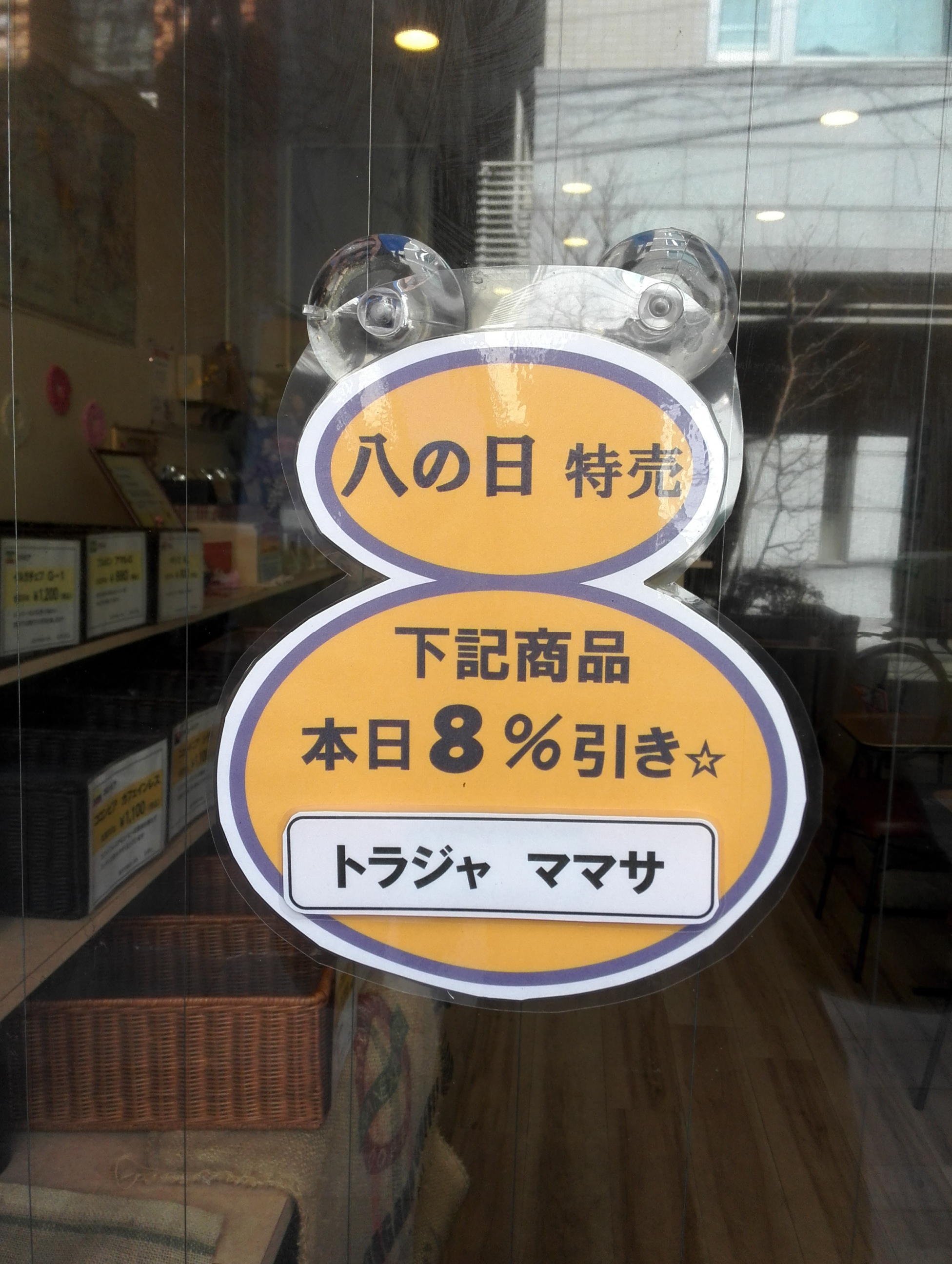 当店も今月より『8』が付く営業日に、常時品の中からコーヒー豆1種類を
