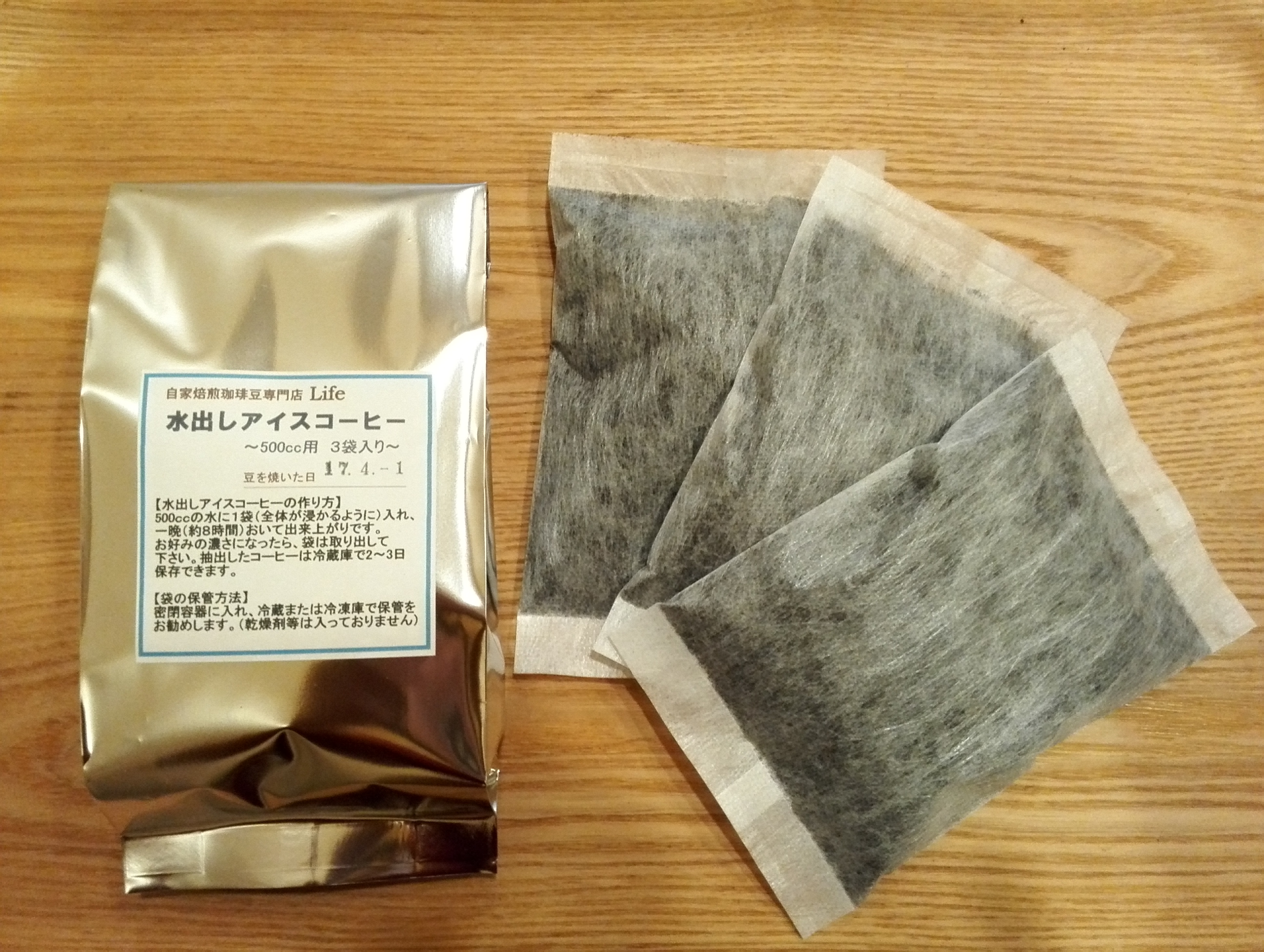 水出しアイスコーヒー用のパックは、コロンビア・フレンチローストでお店にて作っており