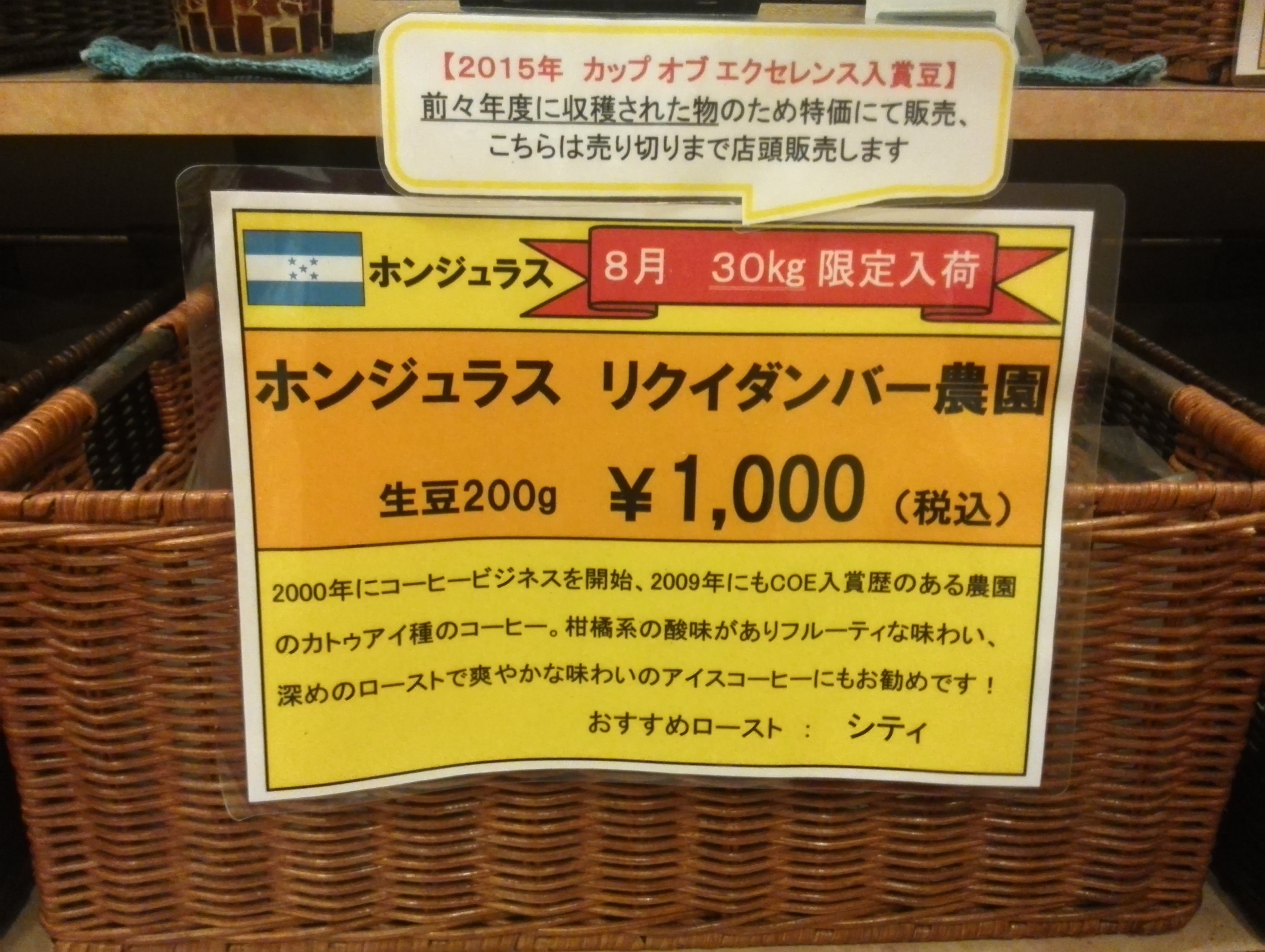 先月に続き、今回も前年度のカップ・オブ・エクセレンス入賞豆です!