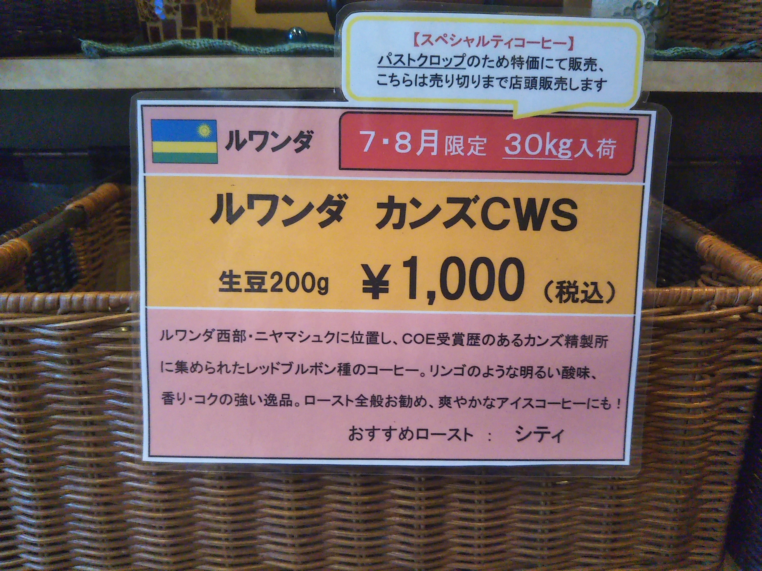 つきましては、8月は新しい豆の入荷は無い予定となりますので、