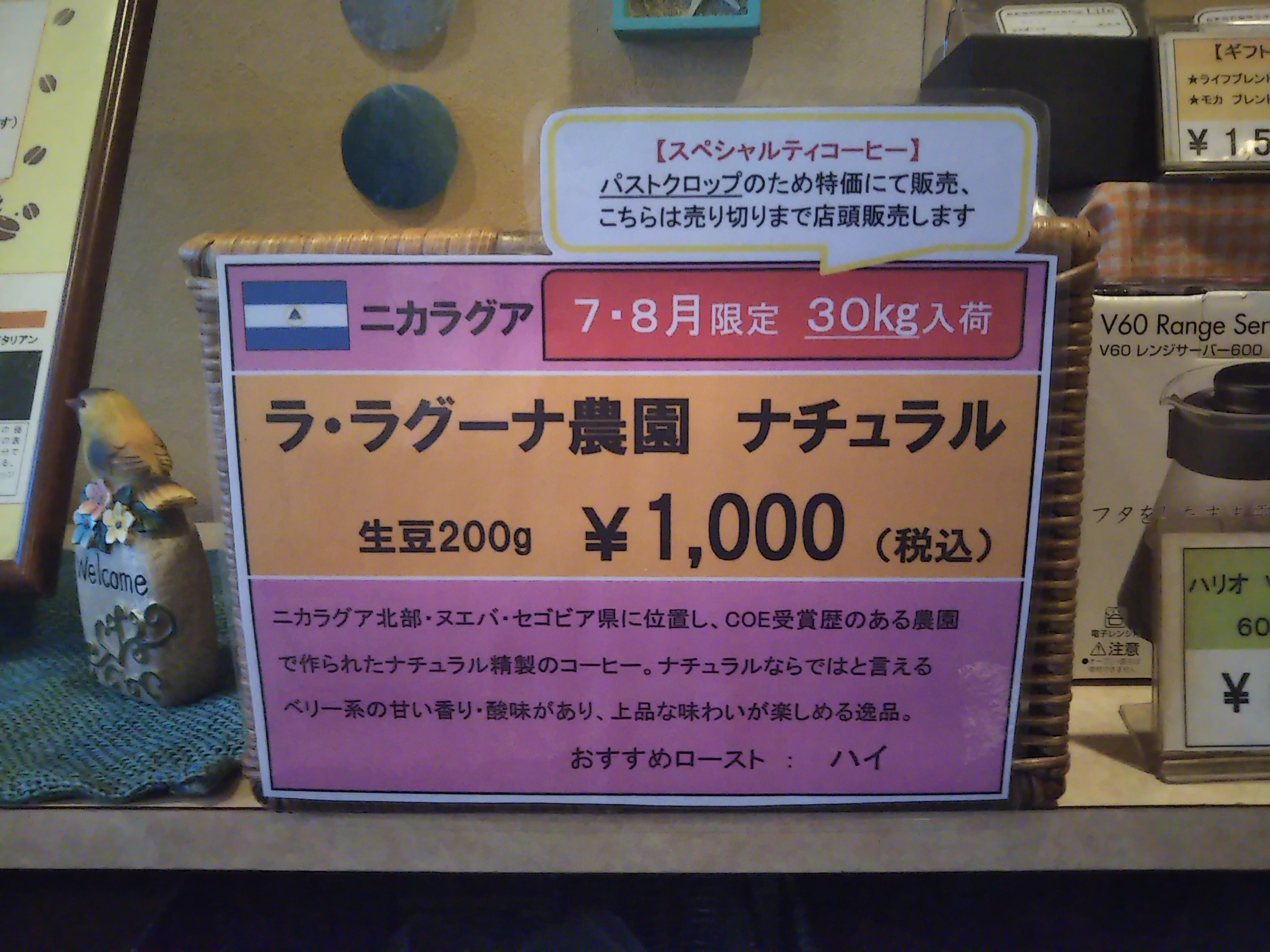 二つ目は、ニカラグア「ラ・ラグーナ農園 ナチュラル」です!