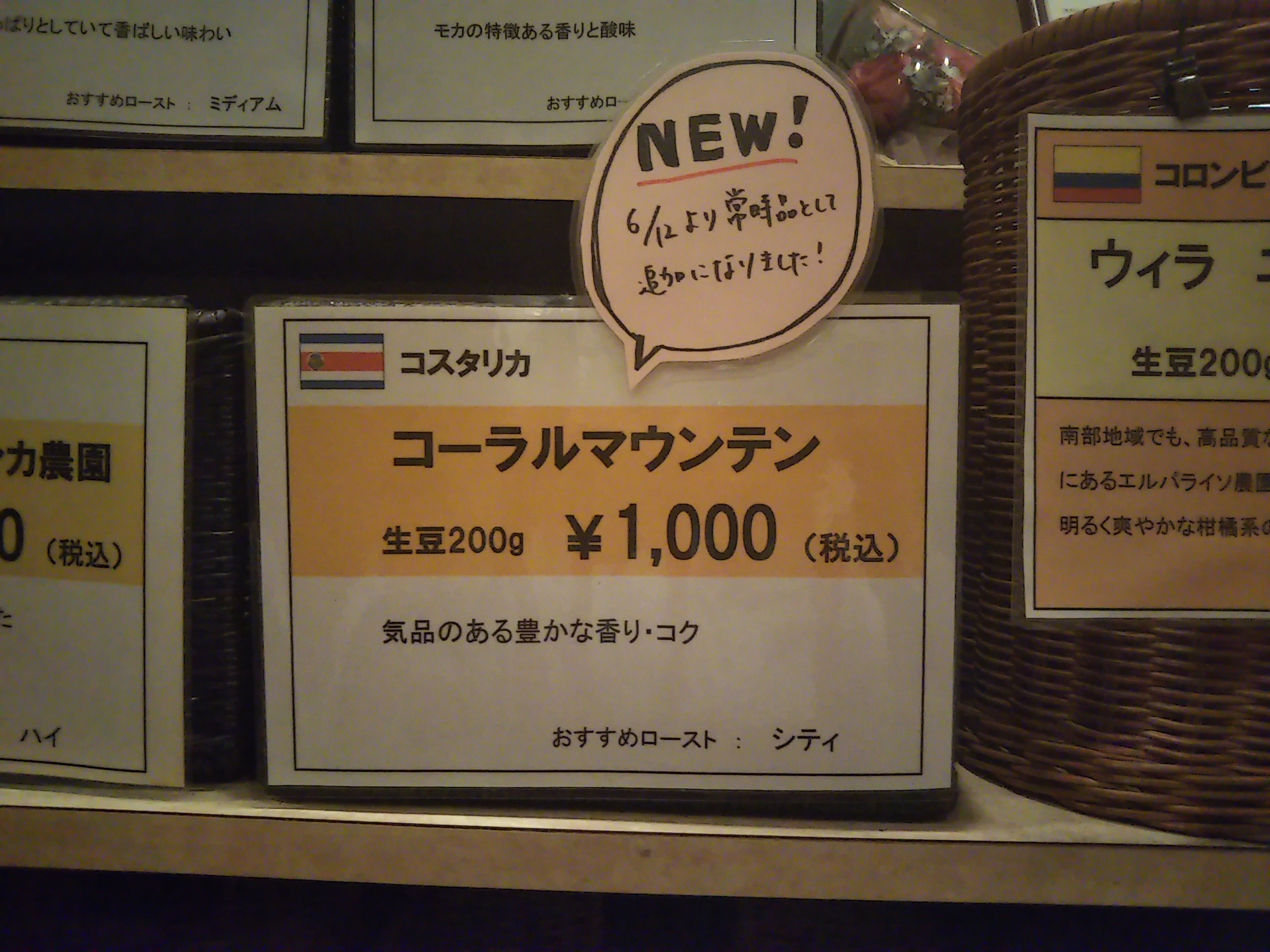 他のコスタリカ産の銘柄を販売した際も