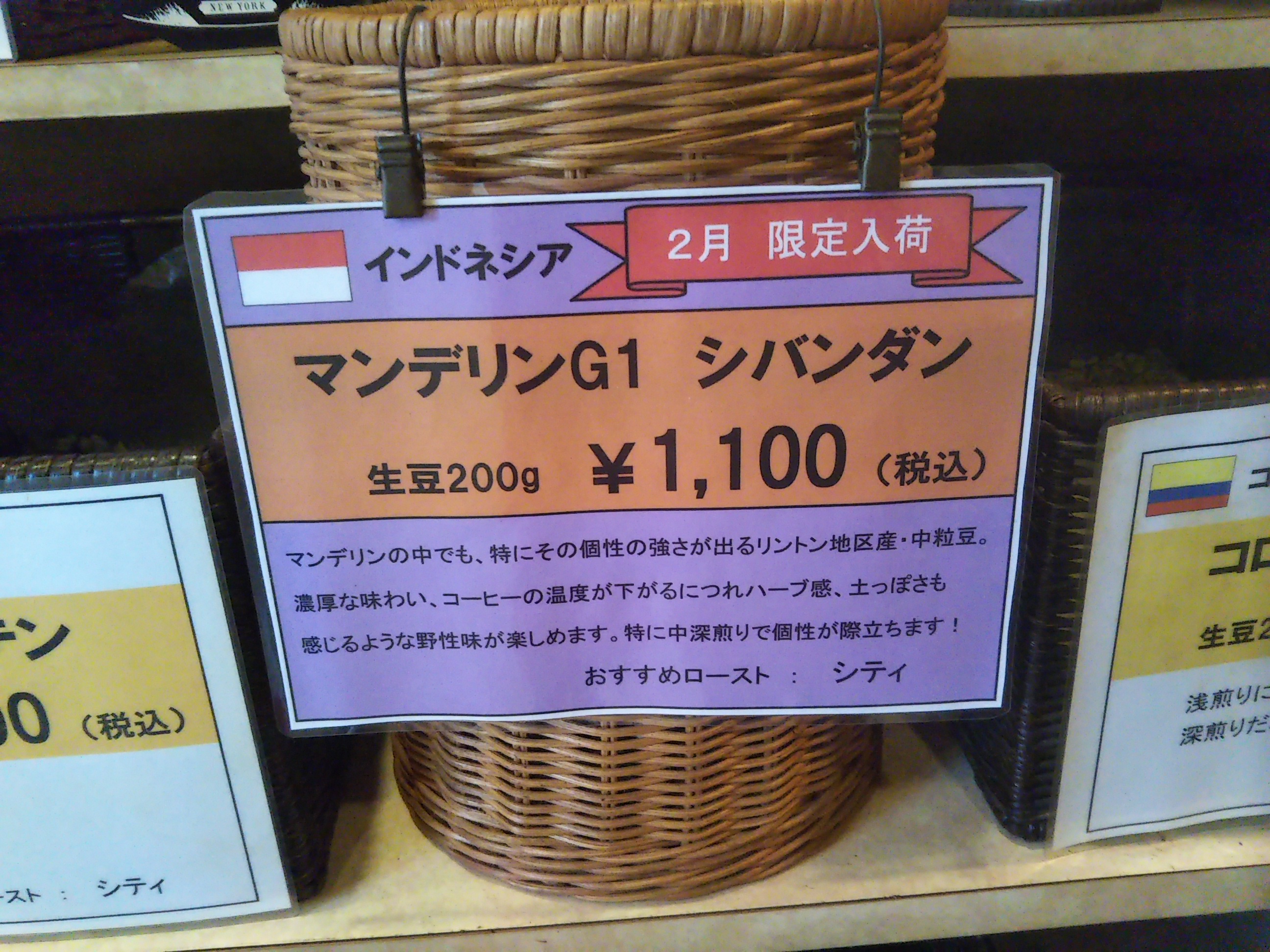 今月の限定入荷豆は、インドネシアの
