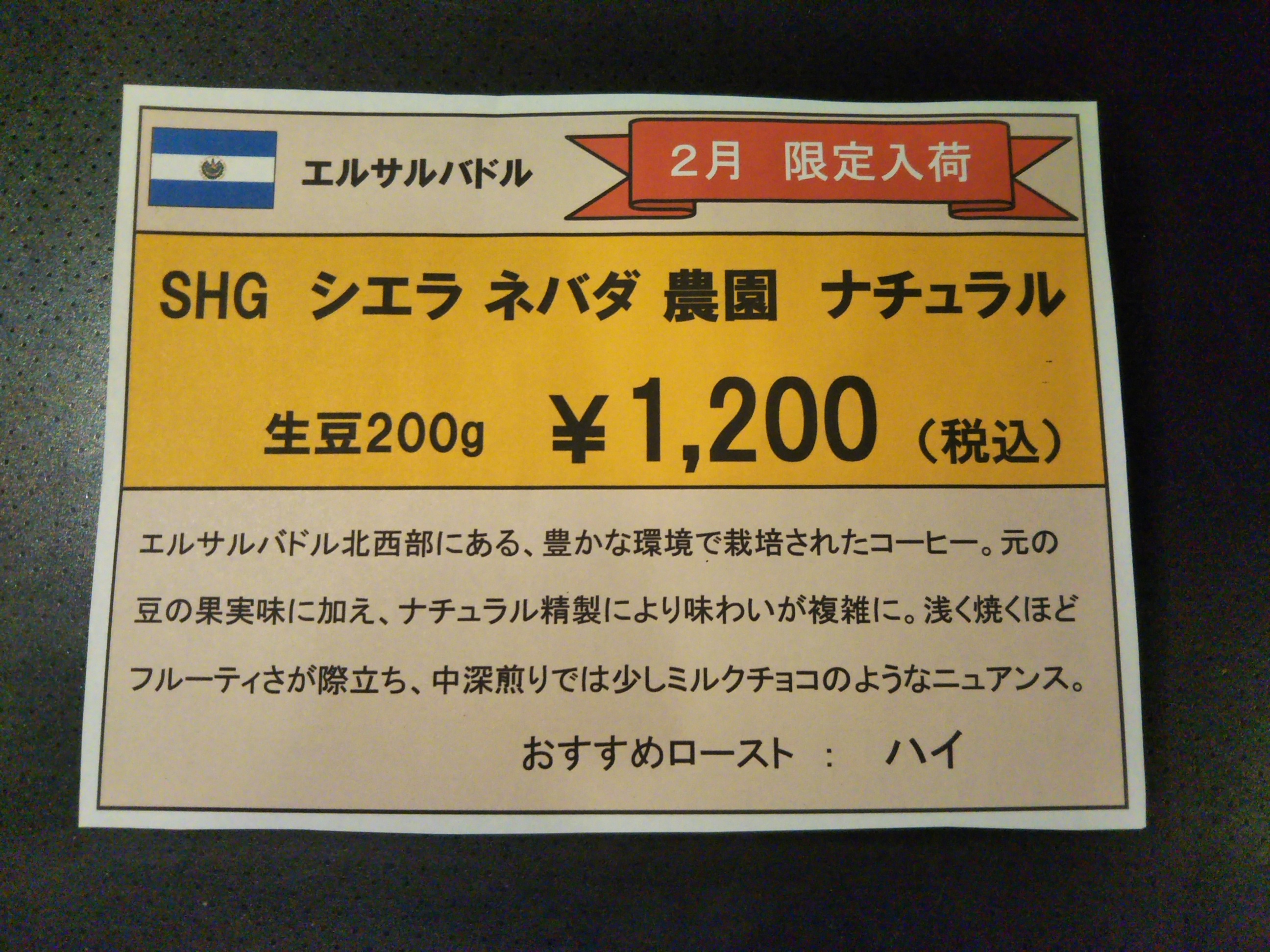 2月の豆は、「エルサルバドル SHG