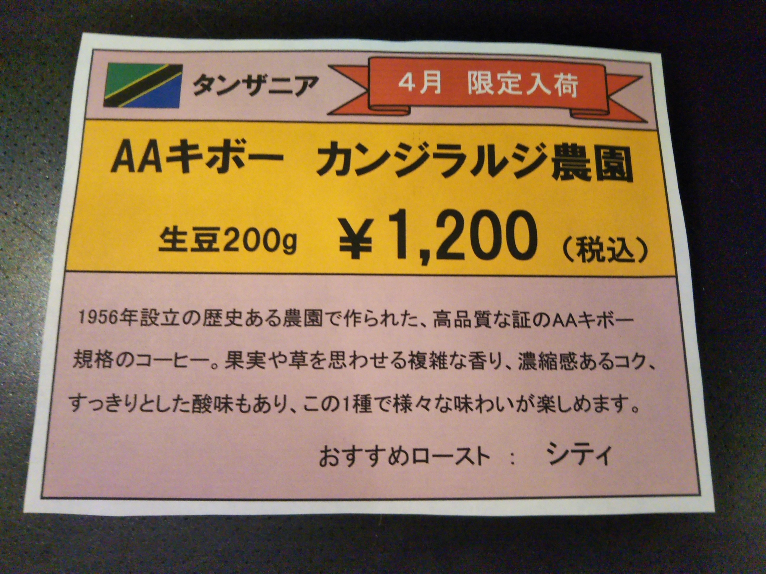 それでは、4月限定入荷豆のご案内