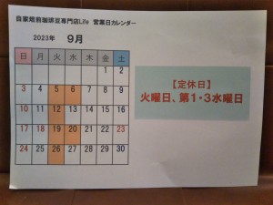 それでは、9月の営業日のご案内です!