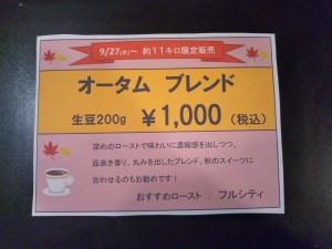 秋限定「オータム ブレンド」、9月27日より約11キロ販売のお知らせ!